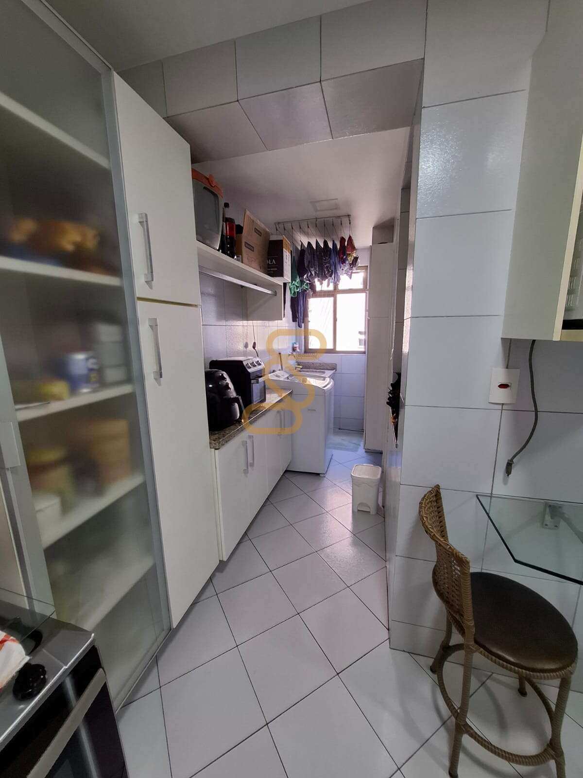 Cozinha, lavanderia e dependência de empregada: o quarto foi convertido em escritório, e o banheiro em despensa (podem ser revertidos; instalações preservadas)